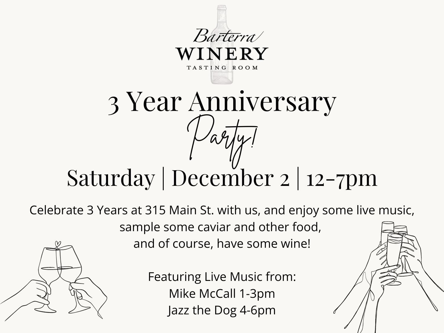 Come down and help us celebrate 3 Years at our 315 Main St. location!