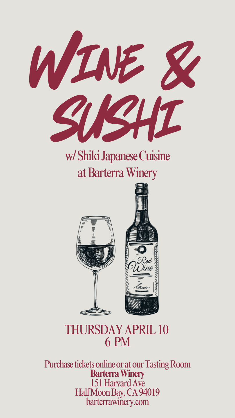 Savor & Sip: Join Us on Thursday, April 10 at 6 pm for a Special Wine & Sushi Pairing w/ Shiki Japanese Cuisine. This special event is limited to only 20 guests so secure your spot today!